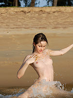 10 Pics: Dark hair beauty playfully reveals her perky tits