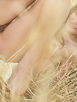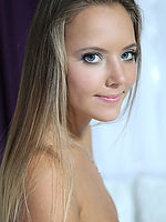 15 Pics: Blonde teen takes off blue panties and plays with her handful tits